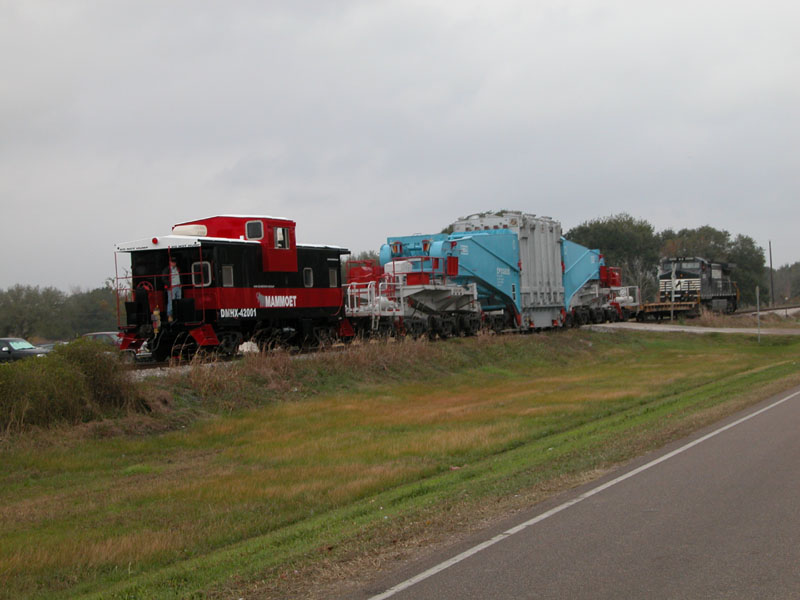 The photos were taken in Angleton, TX. This caboose was accompanying the schnabel car CPOX 820.