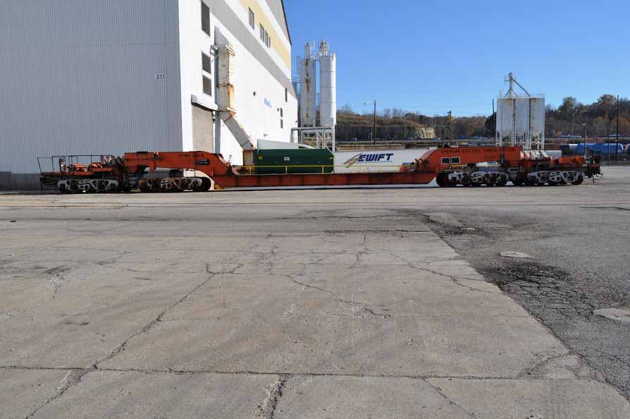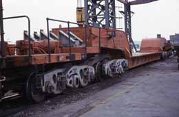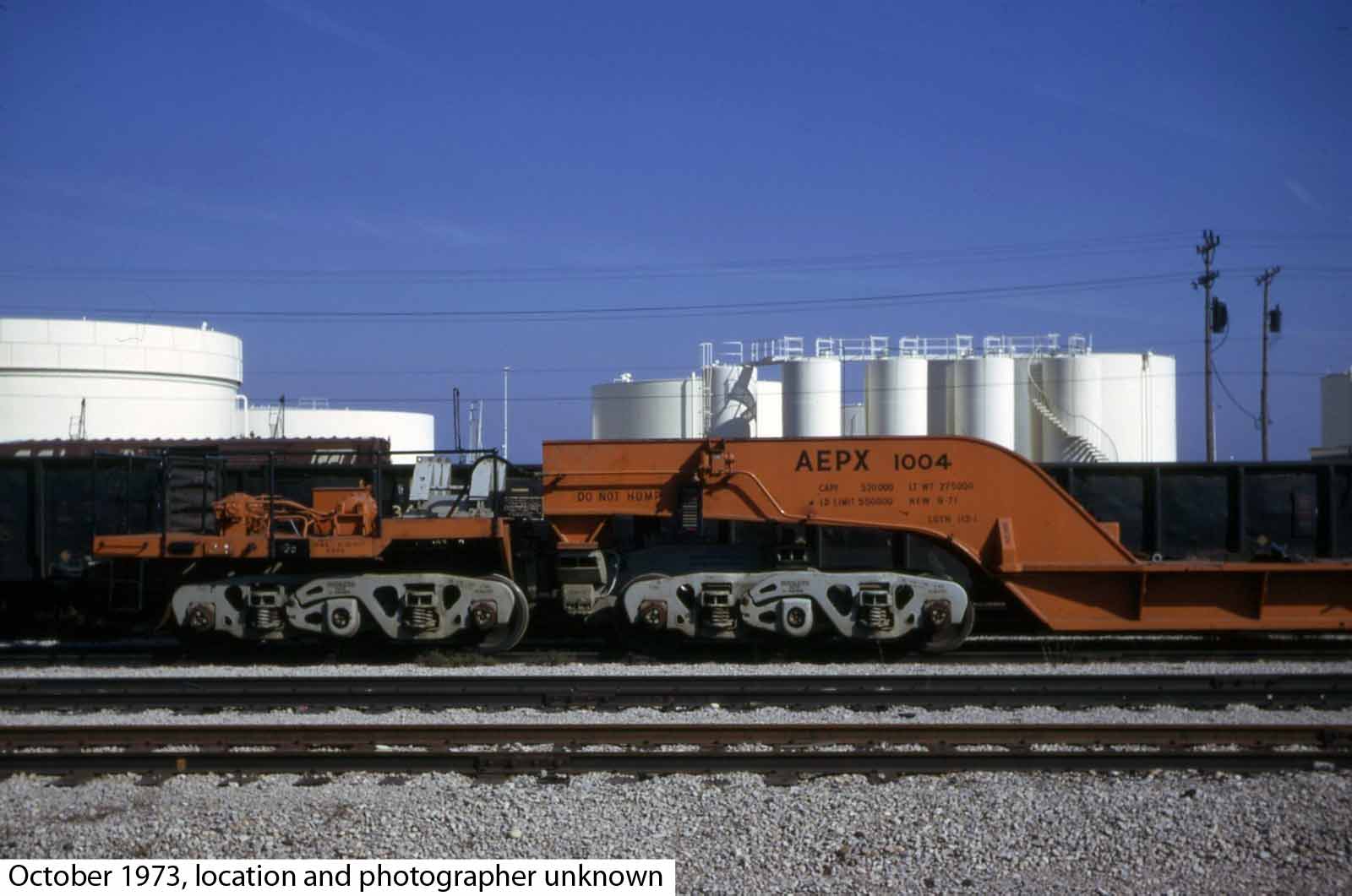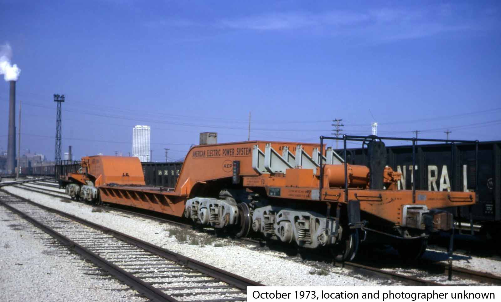 This 12 axle depressed center flat car is owned by American Electric Power System, and it is no longer service.