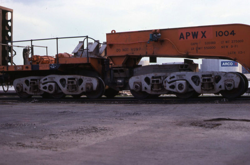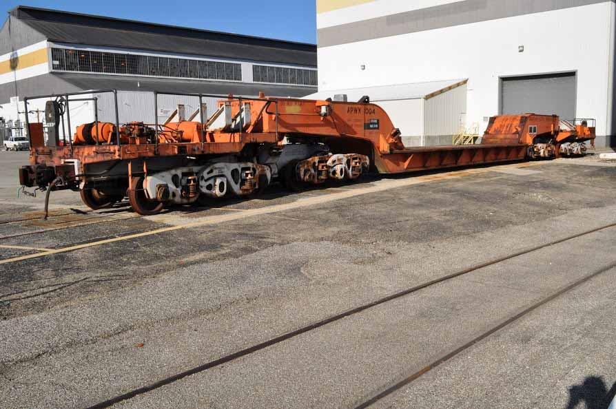 From an NS timetable - When loaded, APWX 1004 must be handled in a special train of no more that 10 cars. Maximum speed of 25 MPH loaded and 45 MPH empty.