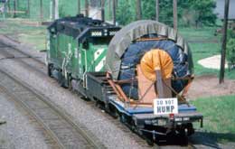 Alstom Power Inc. The car along with the accompanying caboose have been repainted with the Emmert logo.
