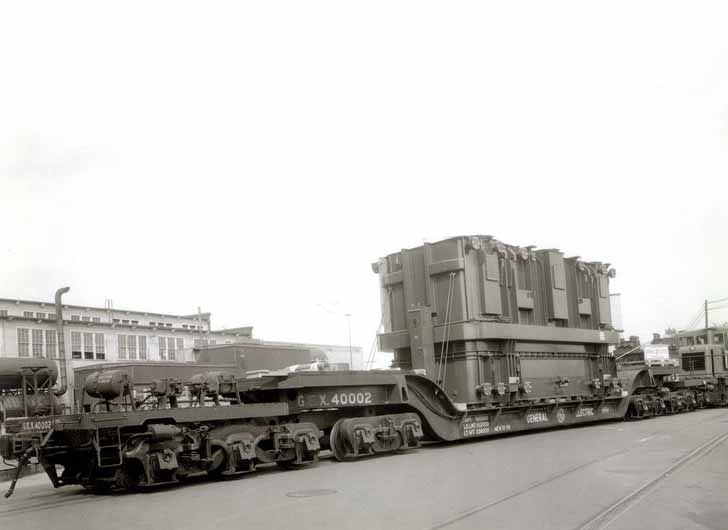 The following photos shows a transformer being loaded at Pittsfield, Mass., and then ready for shippment From the IEEE's, Transformers at Pittsfield.