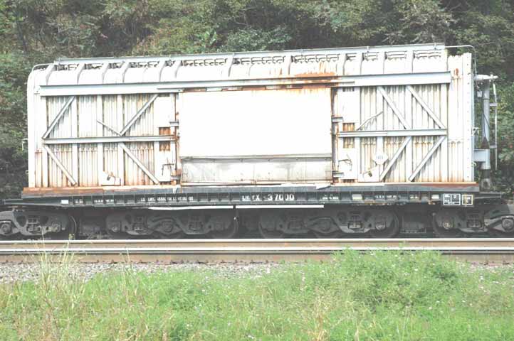 This twelve axle flat car is currently owned by Lehigh Heavy Forge Corporation. It was originally built for