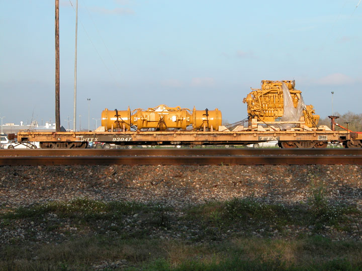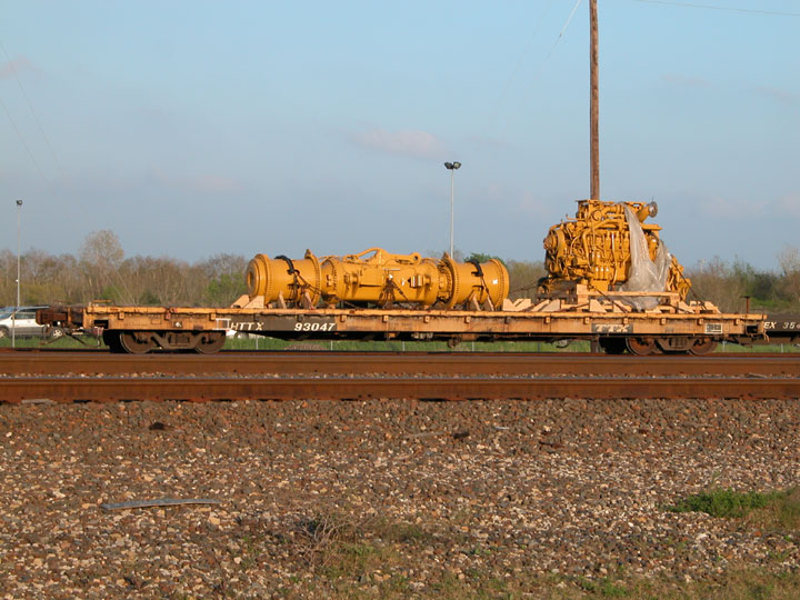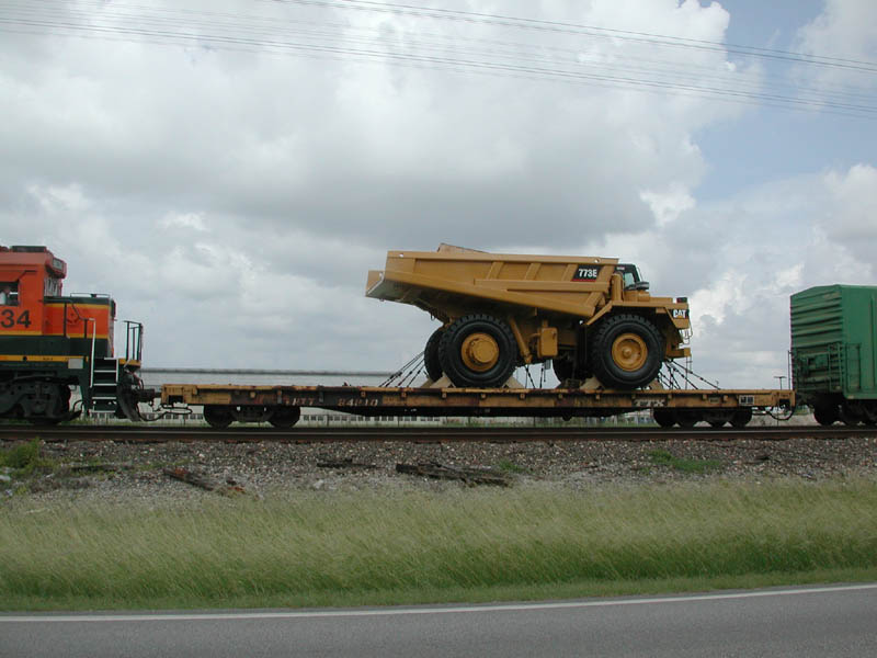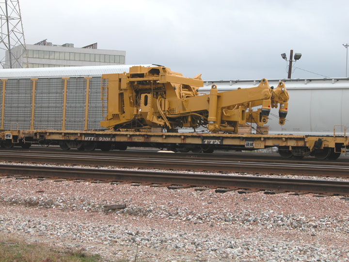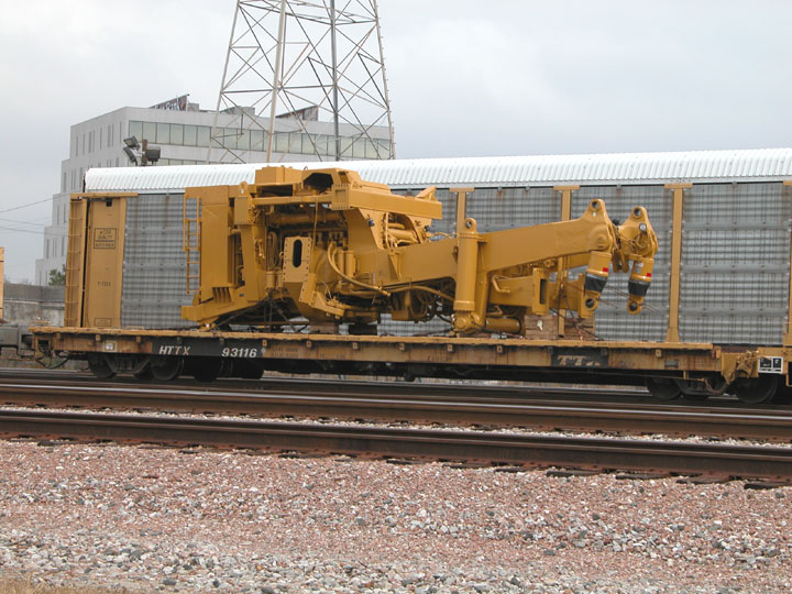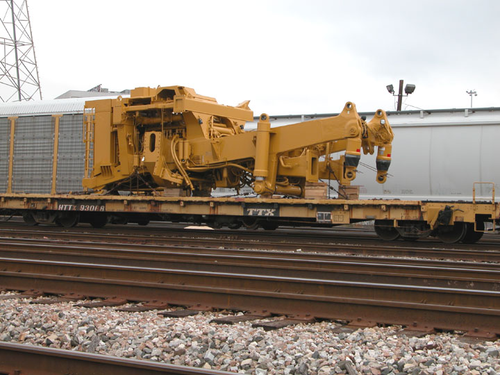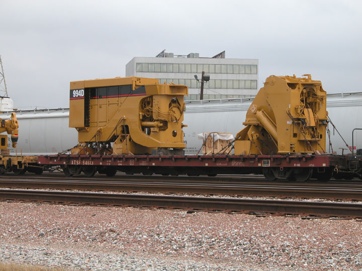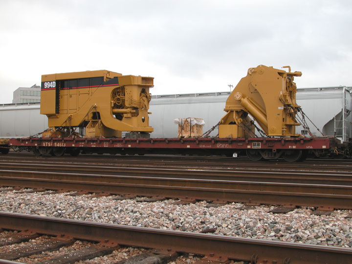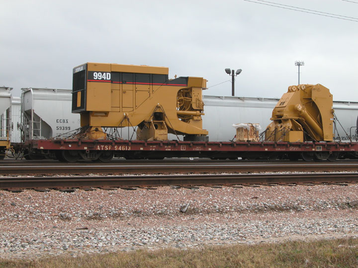 CAT 994 Wheel Loader on ATSF 946131 taken by Richard Boyce at South Yard Houston, TX, used