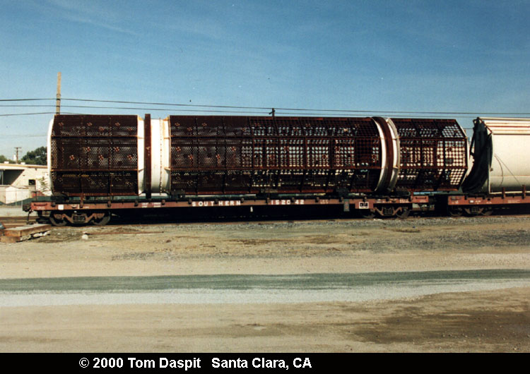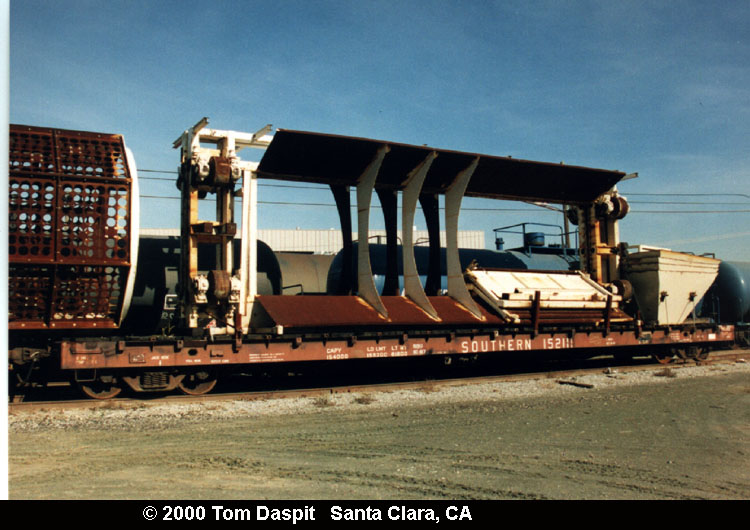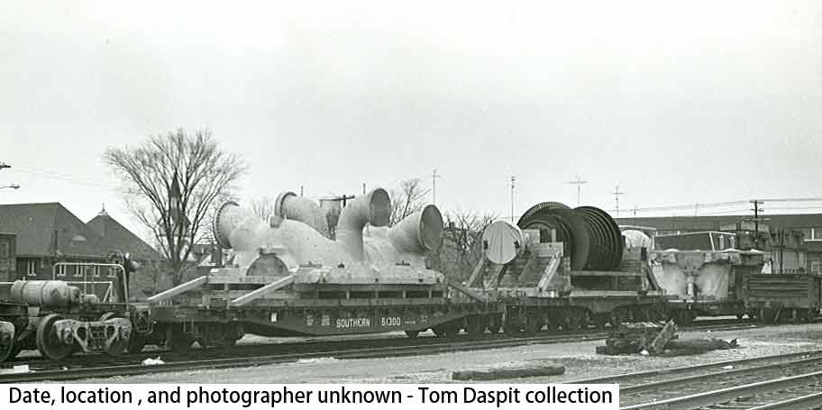 These four Southern Railway cars (SOU 152111, 152128, 152040, and 152042), are delivering oversized