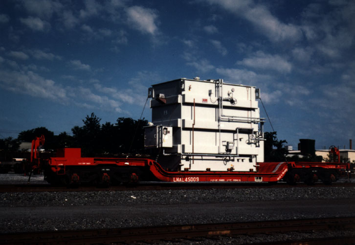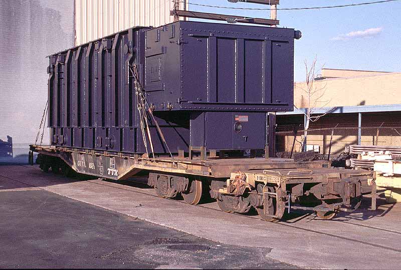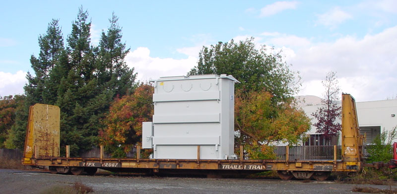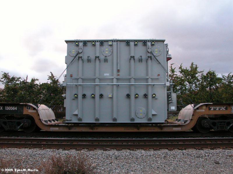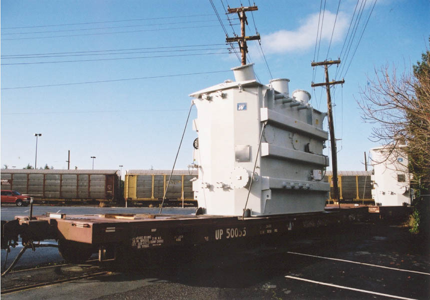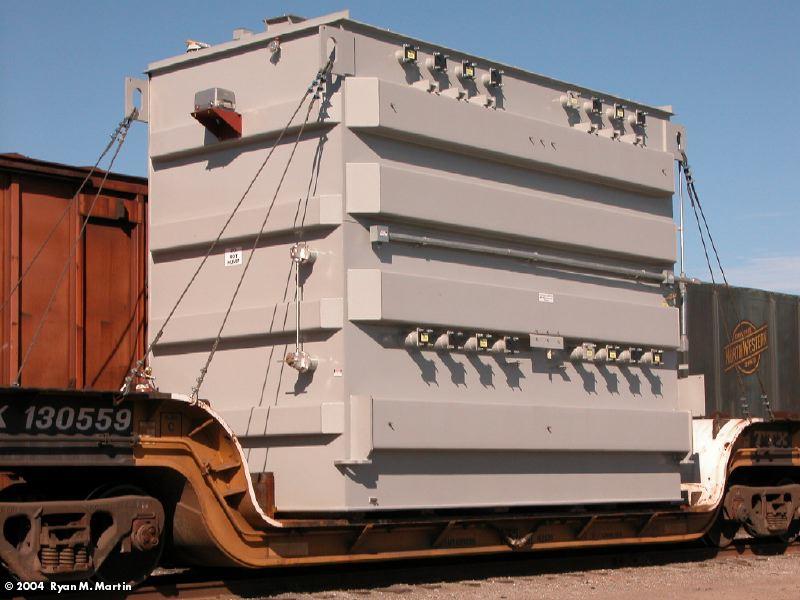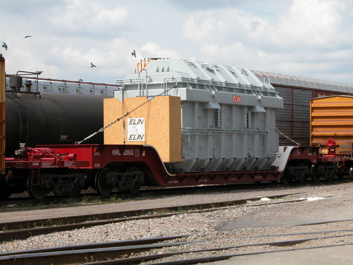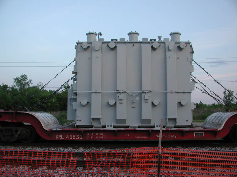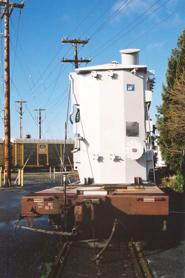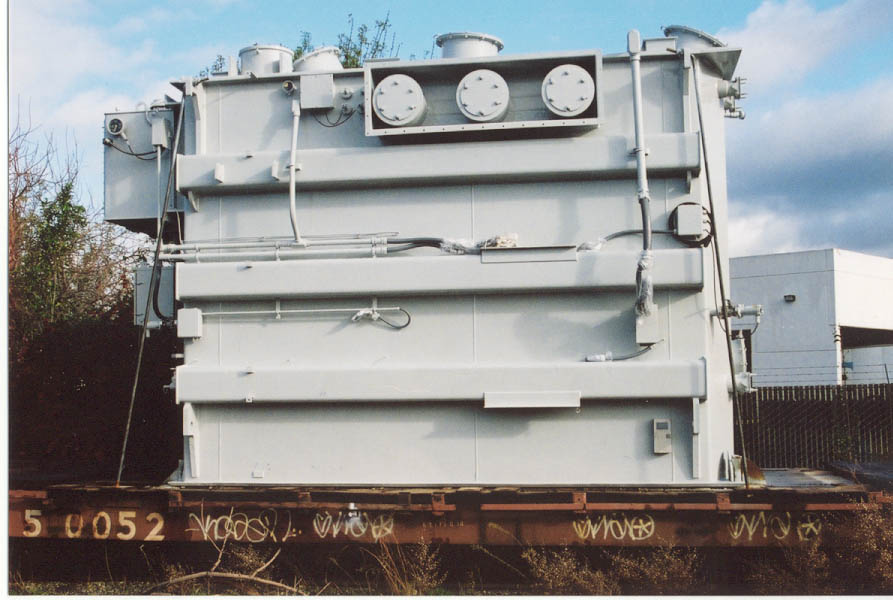 Large ABB transformer on NS 185301. Notice that impact recorders (small gray boxes)have been