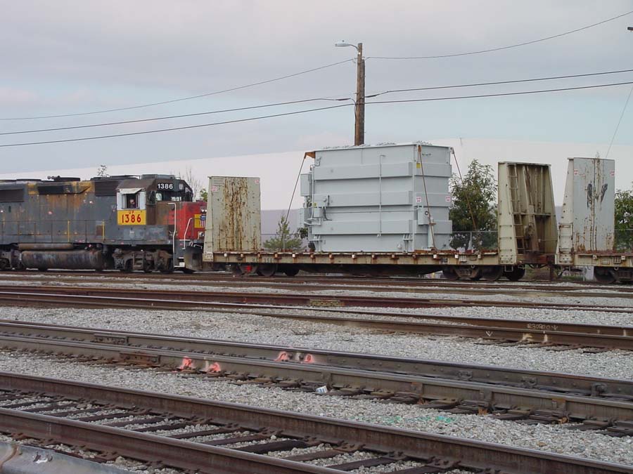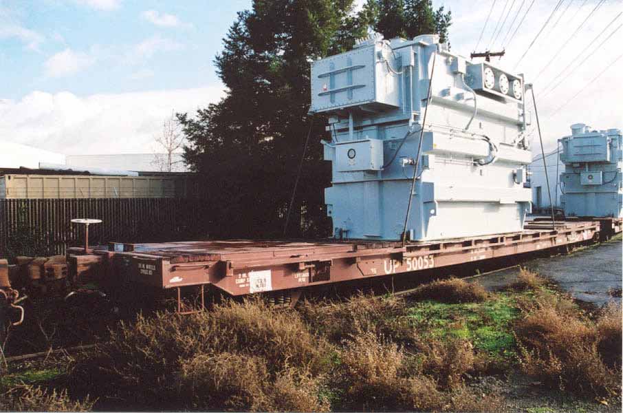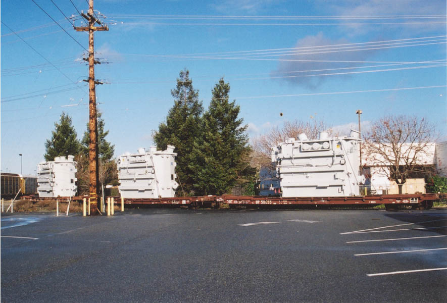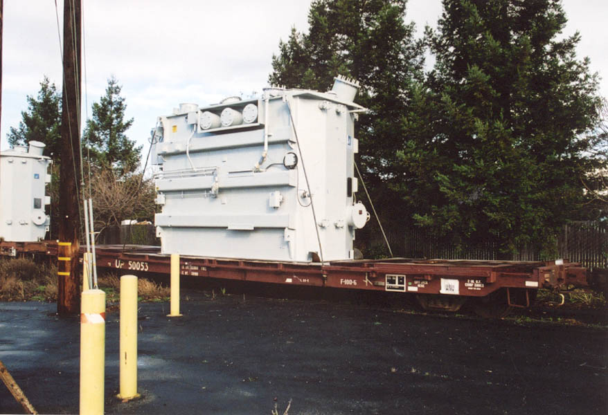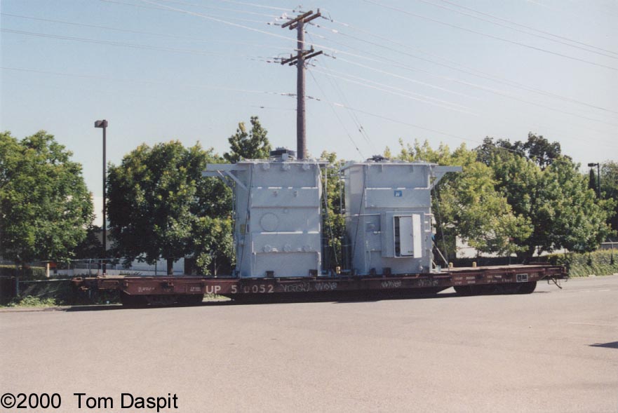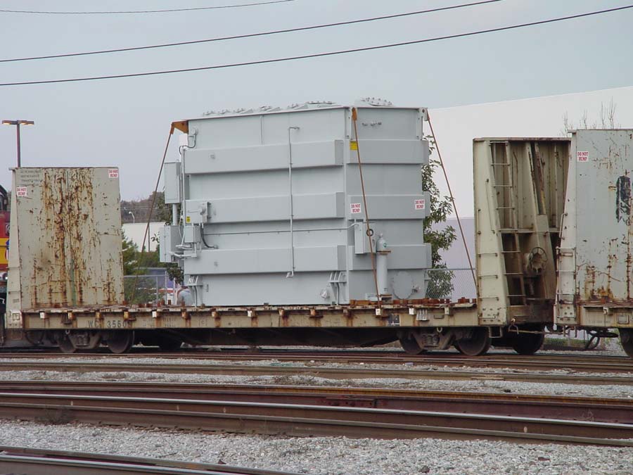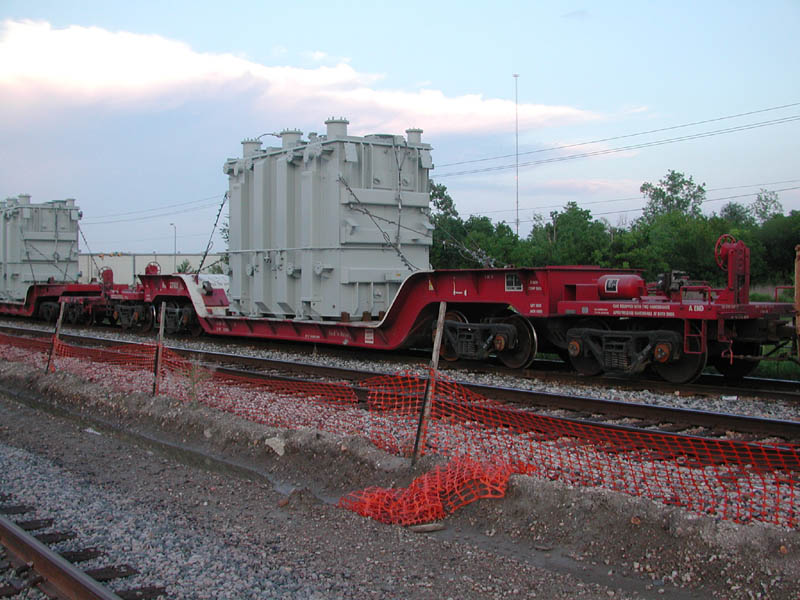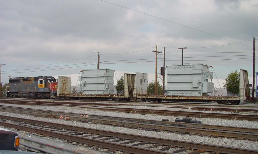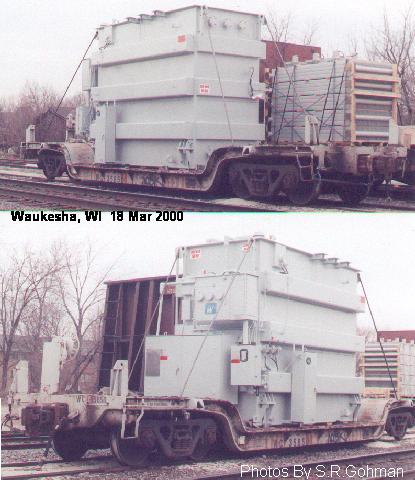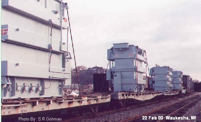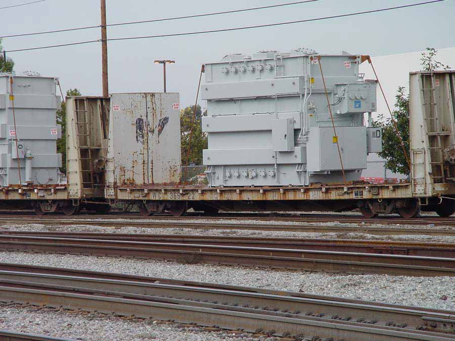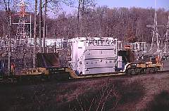 Two different shipments taken in 2000, both smaller transfromers on regular flatcars.