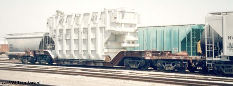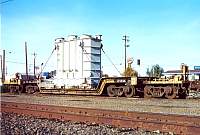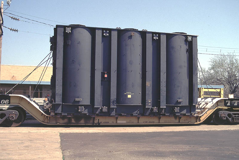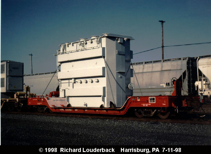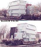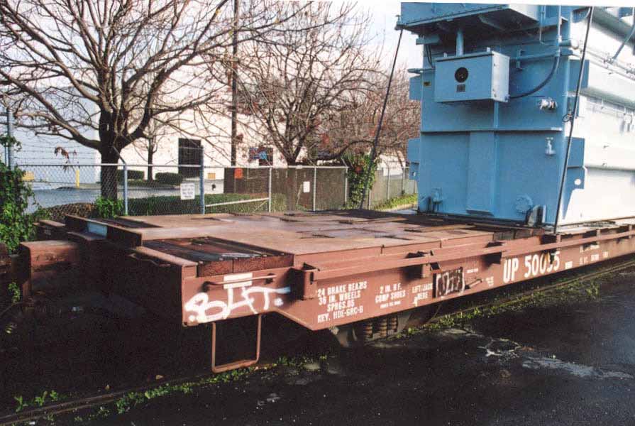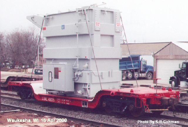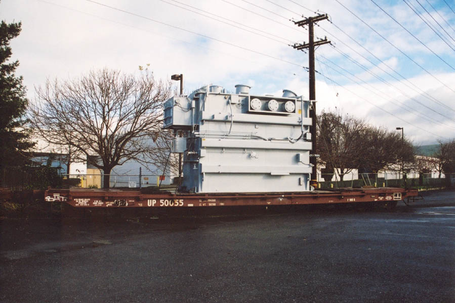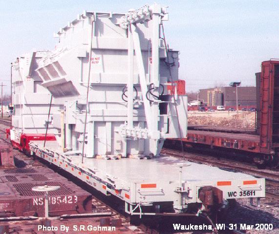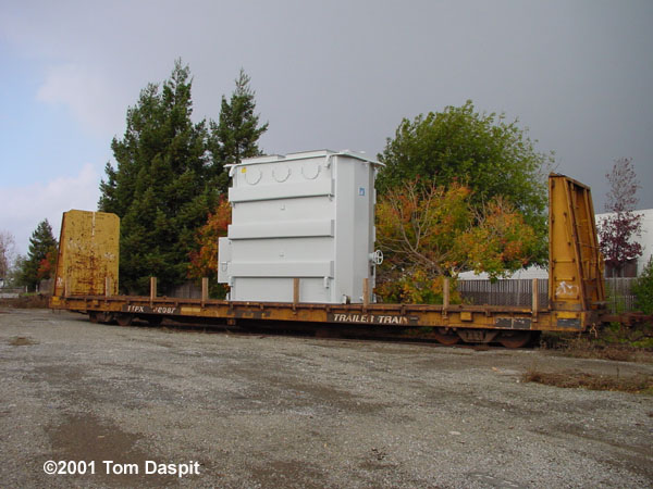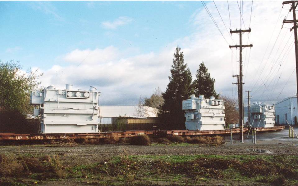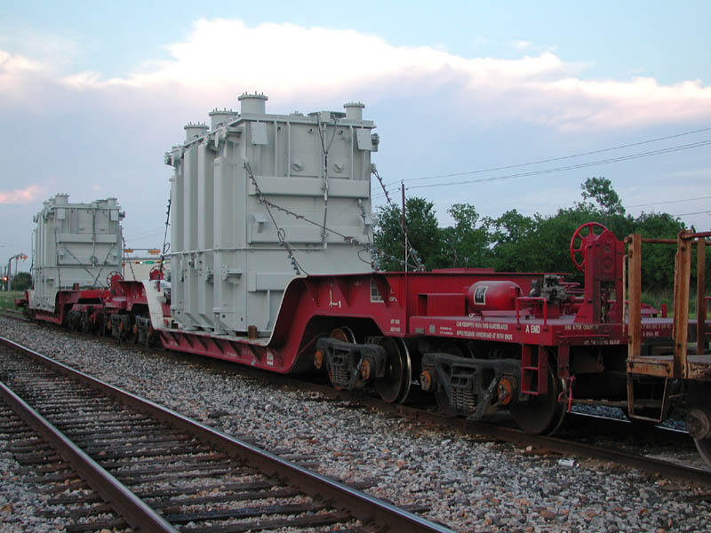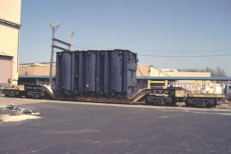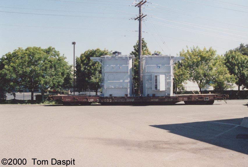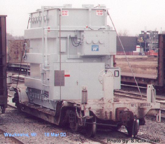 Two different shipments taken in 2000, both smaller transfromers on regular flatcars.