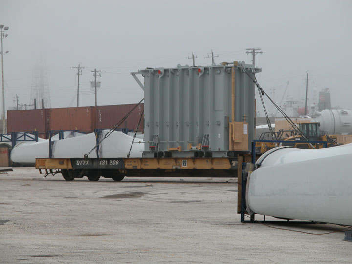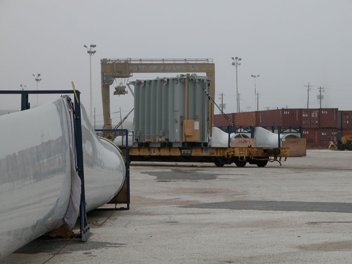 blades that are waiting for shipment. There are more photos of these "unit train" shipments of these wind turbines here.