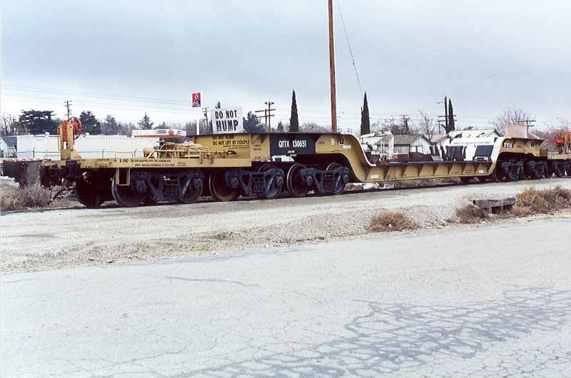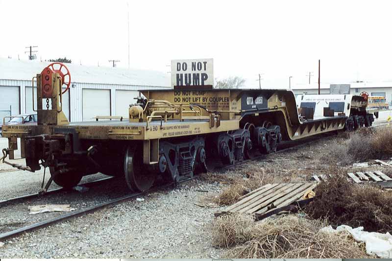 This class of 12 axle depressed flat cars is owned by TTX Corporation.