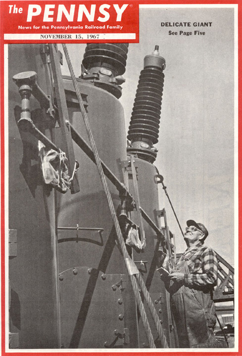 Henry A. Zukackas, car inspector at Kinsman Street Yard, Cleveland, checks bracing on a delicate load, circuit breaker.