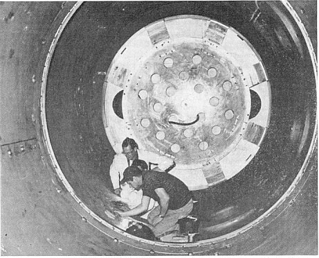 During its construction over 9,500 quality control inspections and tests had been made, but after it was loaded, another test was carried out. The tightly sealed vessel was filled with nitrogen under pressure to check for possible leaks. The nitrogen was left in to protect the reactor from the oxygen in the air, and to make certain that no leaks developed in shipment.