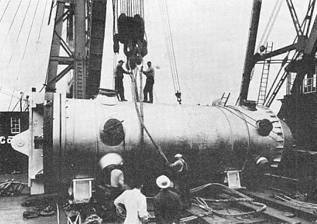 The lift was made by the Merritt - Chapman & Scott Corp.'s floating derrick Monarch, said to be the world's largest floating crane.