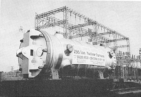 First reactor authorized to be built wholly with private funds; it will supply power to customers of Con Edison in the New York City - Westchester area beginning in 1961. Naturally, extensive tests and adjustments have to be made with such a device, and Babcock & Wilcox, when asked to make early delivery if possible, managed to do so, with the help of the Erie.