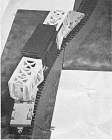 That was solved by building two 100-ton and two 30-ton jacks into each car half. The 30-ton jacks can maneuver the trusses; the 100-ton jacks can lift truss and load together.
