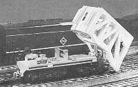 Jacks built into the car make it possible to tilt the trusses like this one to pick up or set down the load. |