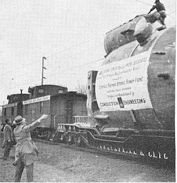 The vessel was moved by barge from Chattanooga down the Tennessee River to Paducah, Ky., and then up the Ohio River to Cincinnati. There it was transferred to a heavy-duty flat car, which had been modified to carry the vessel. Five railroads handled the shipment on its 670-mile rail journey.