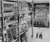 At full load the boiler consumes 65 tons of coal every hour. This coal originates in mines of western Pennsylvania and northern West Virginia. From these points it is hauled on Pennsylvania Railroad lines to the Chesapeake Region for delivery to Baltimore Gas and Electric Company's newest generating plant.