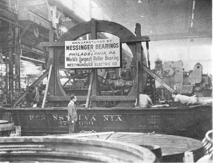 It was manufactured by Messinger Bearings, Inc., and Mr. Ingersoll, aided by Car Inspector James J. Coyle, advised Messinger workers on how to load the huge bearing on one of the PRR's F -33 well cars.