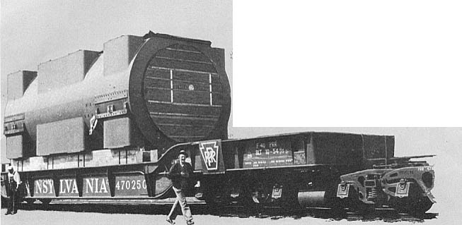 handled the heaviest shipment in its. history-a giant generator part that weighed 231 tons. C&NW was the "anchor man" on a transportation team of four railroads that moved the big stator (stationary part of an electric generator) from General Electric's plant at Schenectady, N. Y., to Duke Power Company's new Dan River Steam Plant near Spray, N. C. It was loaded in a special, 12-axle, "well-type" flat car. Total weight of car and contents came to more than 351 tons.