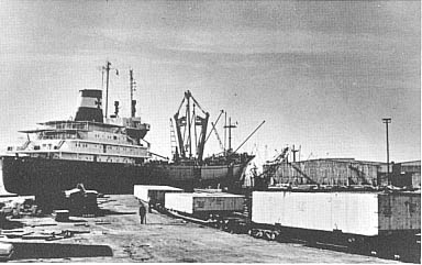 " As the heavy boom swung the item of cargo ashore onto a rail flatcar, the ship took on a heavy list.