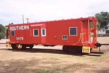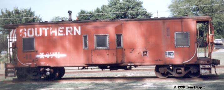 Bay Window Caboose number, x475. This car has an axle mounted generator. Built 1969 by the Gantt Manufacturing Co. Car numbers in the series are x400-x512. Photographed by Tom Daspit in Langley, SC, September 1997.
