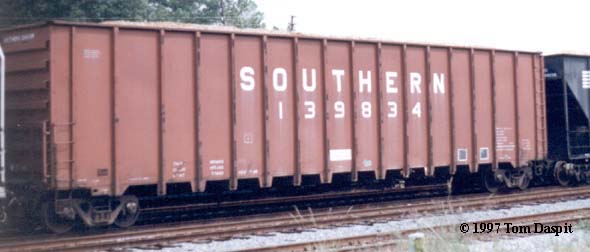 This photo of a 100 ton 7526 Cu Ft Rotary Dump Wood Chip Hopper was taken in Nixon Yard Augusta, GA, September 1997 by Tom Daspit. Built in 1980 by Ortner Freight. Car numbers in the current series are 139725-139874.