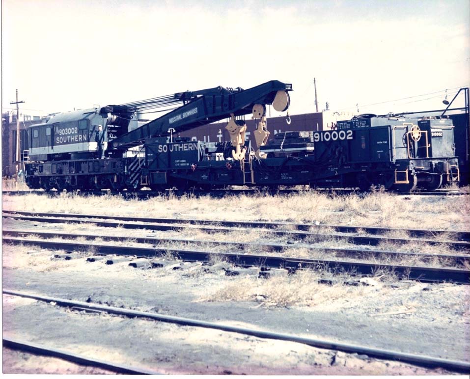 "To the best of my recollection I was in kindergarten when Spencer got the "new" derrick (903002) which would have been in 1960-61. My dad was a carman and worked in the Car Shop at Spencer. (The Car Shop guys staffed the derrick when there was a derailment.) When Spencer Shops shut down in 1959, the Car Shop was the only thing that remained (other than the freight yard). 903002's boom car (910002) was built in the Spencer Car Shop by two carmen, one of which was my dad."