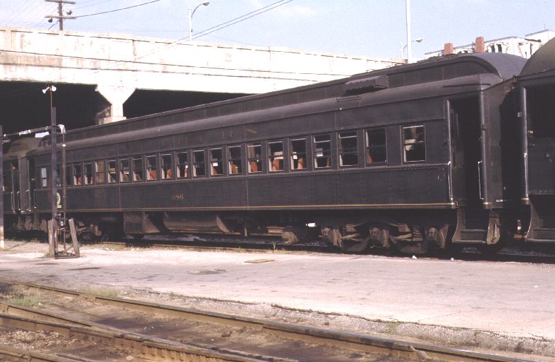 This photo posted to alt.binaries.pictures.rail by garym@texas.net (Gary Morris). Southern heavyweight coach #1086 at Southern station in Knoxville, Tn - Aug75.
