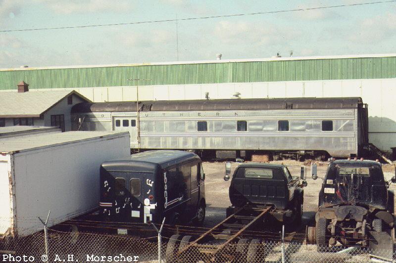 Former southern railroad passenger baggage combine being used as part of a building, at state road and I-480, in Cleavland, OH. The number 711 is visible. The picture was taken on 03-02-1991.