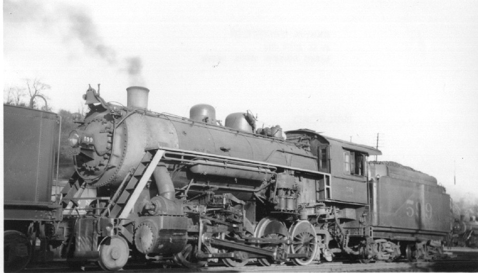 Southern Steam #599 Location: Unknown Date: Unknown Builder: Richmond 1906 Class: Ks Type: 2-8-0 Photograph: Max Miller, Ed Bowers collection