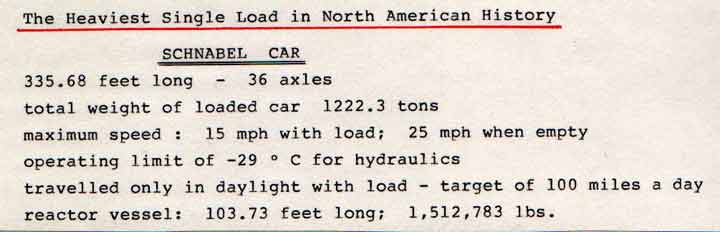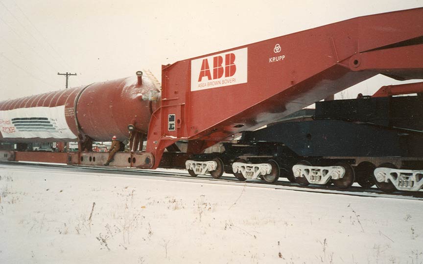 This is the largest schnabel car, and the largest freight car ever built. It was originally built for Combustion Engineering by Krupp Industries of West Germany, in 1982.