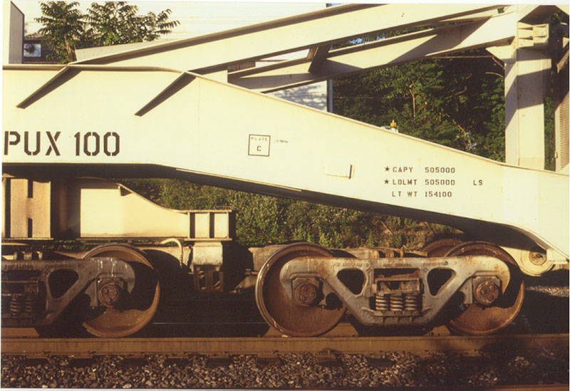 This twelve axle schnabel car is owned by Power Asset Recovery Corporation, and is still in service. It was