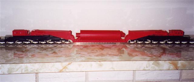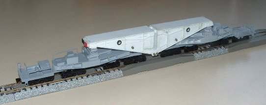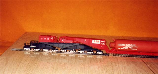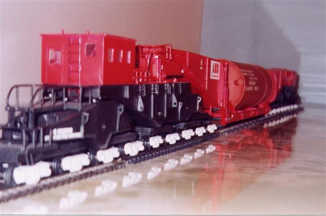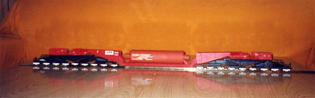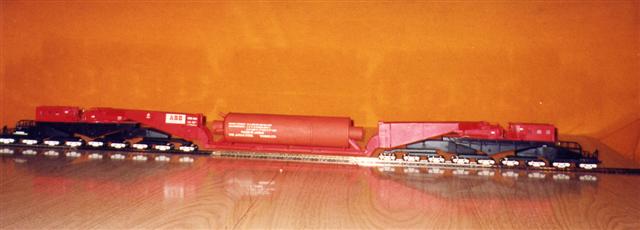 prompted the model builder. The Schnabel super structure was built for/by Frank Hake Rigging contractor from Phila, PA. This was added to two D&H heavy flats (close to the Atheran model) when the reactor was moved from a truck to the rail car in York, Pa for movement to Three Mile Island.
