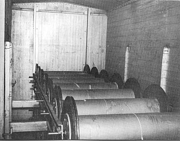 The special construction inside such Southern box cars as the one pictured here is designed to carry so-called "beams" of nylon and rayon. The beams lock in place, thus assuring damage-free shipment. |