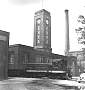 Symbolic of the close working relationship between American Enka and the Southern Railway, a switch engine passes beneath Enka's clock tower at Asheville, N. C., as it spots cars. |